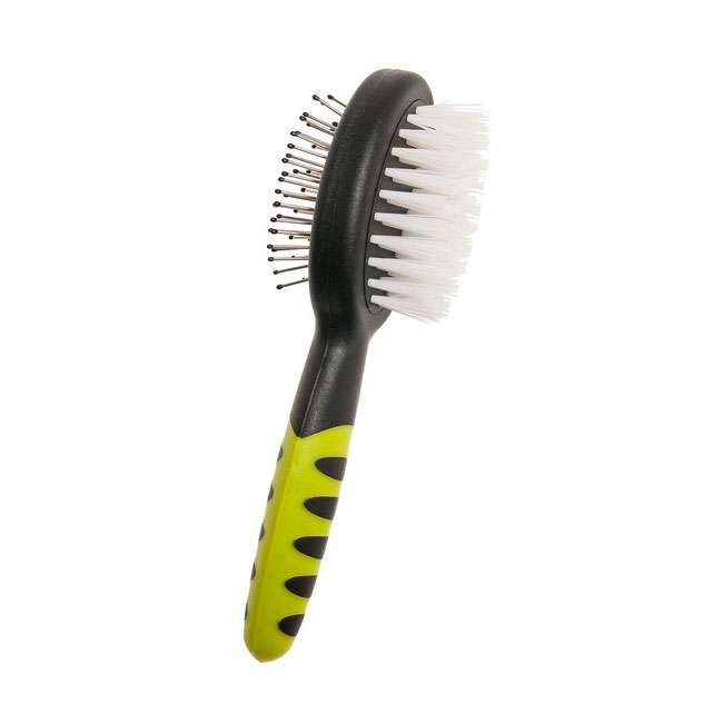 Die 2 in 1-Bürste von Karlie Flamingo ist auf der Vorderseite mit Borsten und auf der Rückseite mit Stiften bestückt. Die Borstenbürste verleiht dem Fell Ihres Kleintieres ein strahlend glänzendes Aussehen, die Stiftbürste eignet sich ideal zum Entwirren des Fells. Die Bürste ist mit Anti-Rutsch-Griff ausgestattet und ist somit das ideale Equipment, um bei Ihrem Kleintier für eine optimale und zugleich schonende und sanfte Fellpflege zu sorgen.
