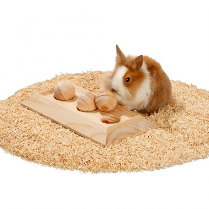 Intelligenzspielzeug für Kleintiere. Holzkugeln mit Futterboard